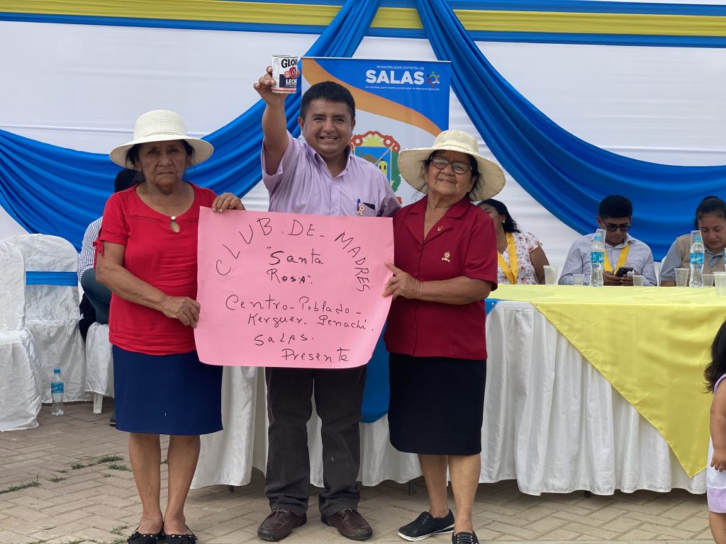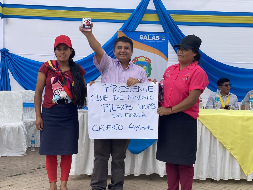 Alcalde de la Municipalidad Distrital de Salas, Ing. Elmer de la Cruz Bernilla, acompañado de su esposa la Sra. Judith Rojas, Ing. José Pairazaman Goicochea y Regidores participaron del “ENCUENTRO DE CLUBES DE MADRES PARA RECIBIR EL CAMBIO DEL PRODUCTO DE AVENA POR LECHE EVAPORADA”.